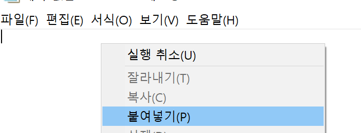 붙여넣기를 선택하시면 드래그한 텍스트의 복사 붙여넣기작업이 완료됩니다.