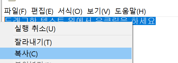 우선 마우스로 복사하기, 붙여넣기를 알아봅니다.