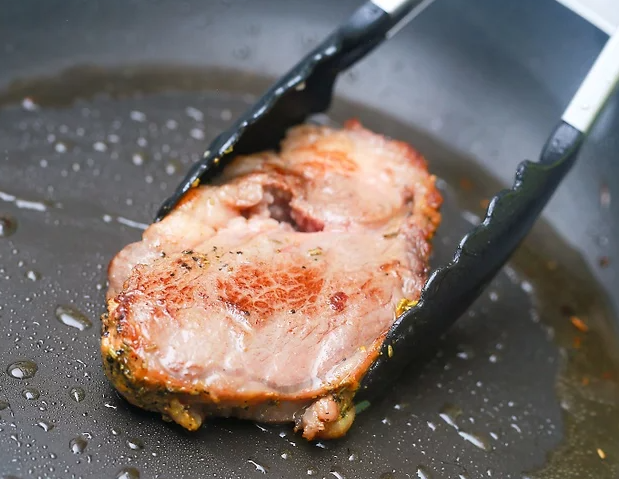 고기 내부의 온도가 레어의 경우는 50도 내외, 미디엄은 60도 내외, 웰던은 70도 이상입니다. 원하는 익힘의 정도를 구했다면 프라이팬을 꺼내 가스렌지 강불로 겉면만 노릇노릇하게 익혀주면 됩니다.